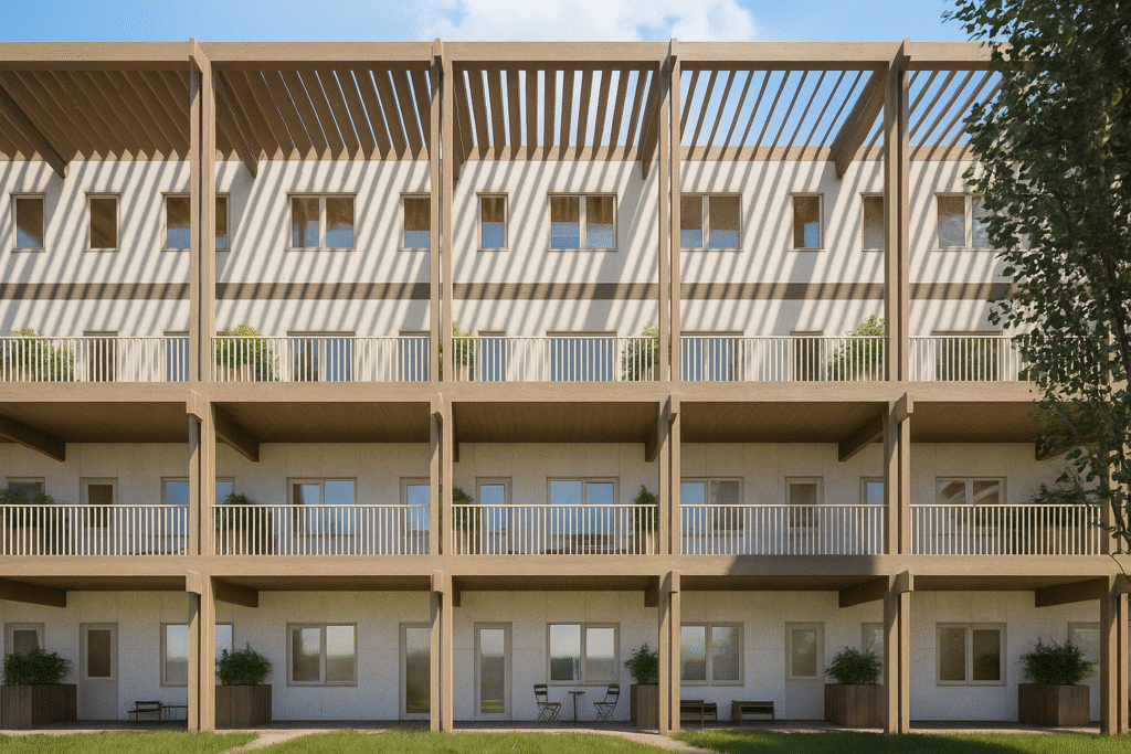 Met onze ervaring binnen de B-group op het gebied van architectuur, engineering en realisatie hebben we als B-leaf, samen met woningcorporaties en ontwikkelaars, een compacte, biobased woning ontwikkeld: de Equatium